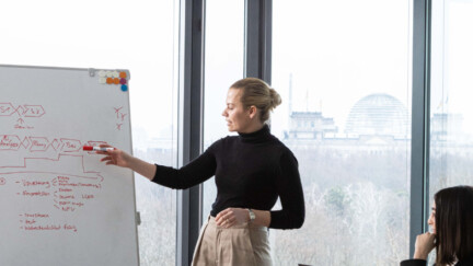 Das Programm der meisten Karriere-Events besteht aus mehreren Elementen: Du hörst beispielsweise einen Vortrag einer Fachkraft aus dem Unternehmen, tauschst dich mit Firmenvertretern und den anderen Teilnehmern beim Mittagessen aus, bearbeitest danach in Teams eine Fallstudie und präsentierst die Ergebnisse.