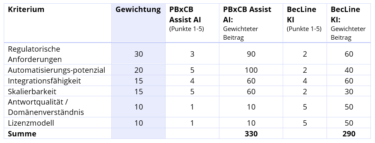 - Vergleiche die Anbieter anhand der ausgewählten Kriterien und entwickle eine begründete Anbieterempfehlung.