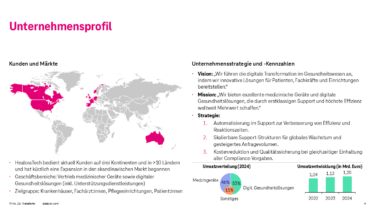 Dein Kunde ist die HealoraTech AG, ein international tätiger Konzern aus der Healthcare-Branche mit Hauptsitz in Frankfurt am Main. Das Unternehmen beschäftigt weltweit rund 18.000 Mitarbeitende und erzielt einen Jahresumsatz von ca. 1,2 Milliarden Euro. HealoraTech ist auf die Entwicklung, Produktion und den Vertrieb medizinischer Geräte sowie digitaler Gesundheitslösungen spezialisiert.